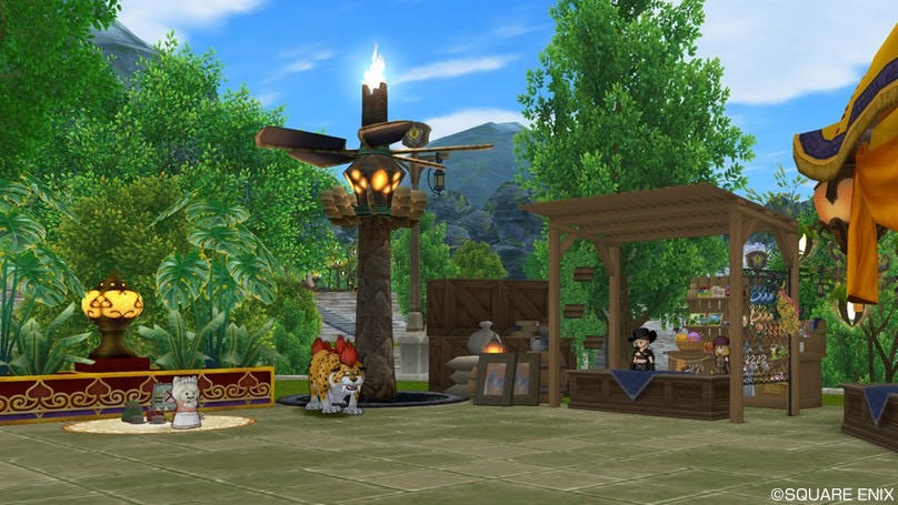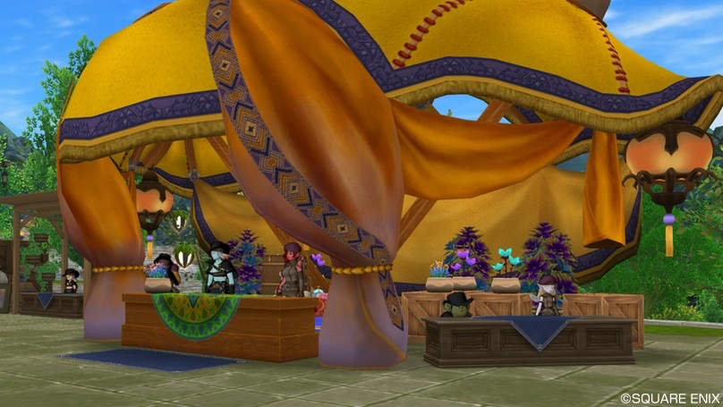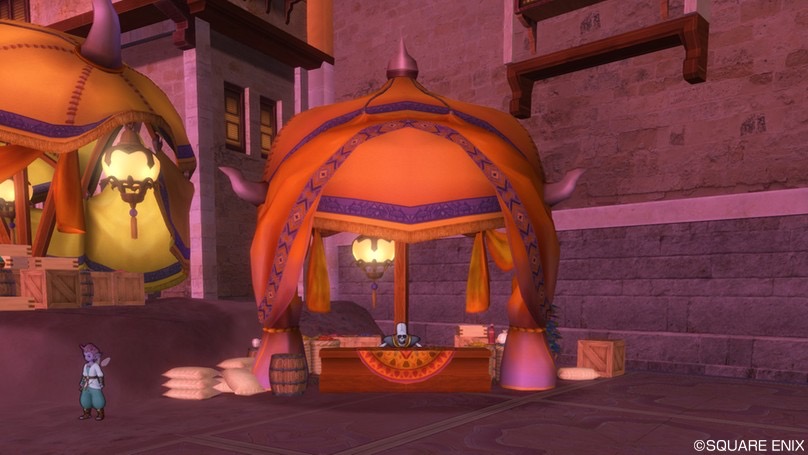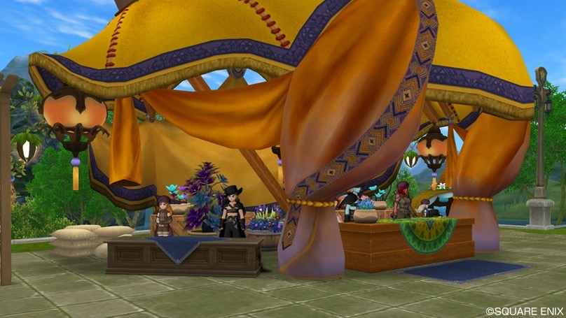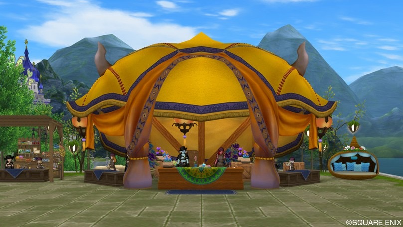 先日DQXショップで発売された「砂の都のテント」。皆さん買いました?僕は屋根のある庭具が好きというか、NPCを野ざらしにするのがかわいそうで、屋根付きの庭具が出るとついつい買っちゃうんですよね。ということで今回も迷うことなくゲット。